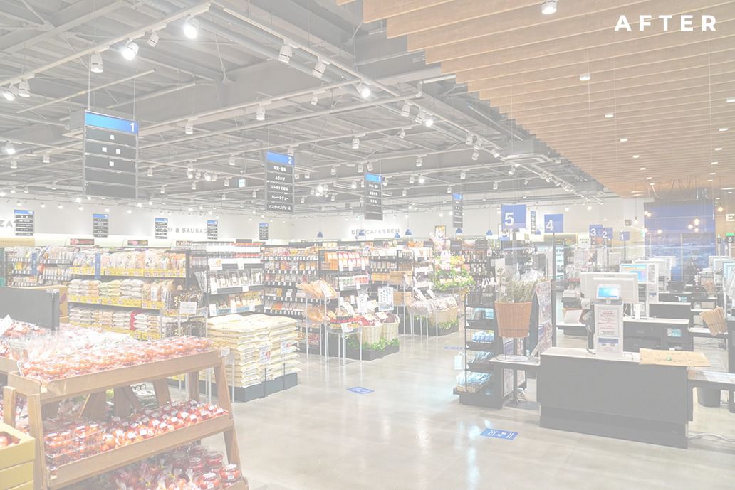 店内は天井を「スケルトン」にしたことで、売場の広さは変わらないものの空間全体に広がりが生まれ、よりゆったりとお買い物を楽しんでいただける店へと生まれ変わりました。