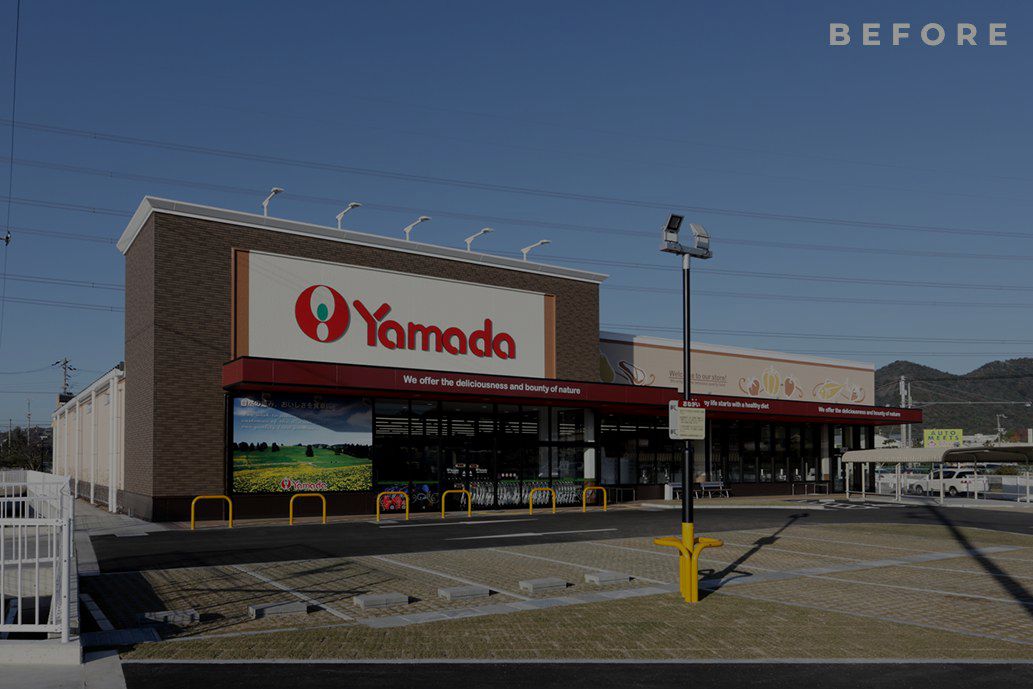 10年目の全面改修に際し、外観については建物形状をそのままに「マテリアルの変更」「塗装のやり変え」で新たなブランディングに沿った顔づくりを行いました。